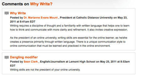 But there are some things to really treasure about online writing. For example, see below. How glorious when the dangling modifiers of a university president get corrected by a high school student!