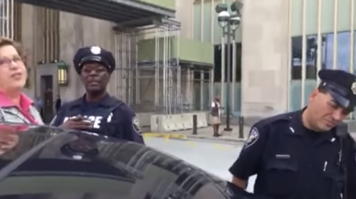 Almost to prove his power to me, he then spoke the magic words, calling in “a hostile vehicle,” and within seconds, we were surrounded by eight police officers, including K-9 and Homeland Security forces. It was truly bizarre. I asked for his name so that I could make an official complaint. He refused to give it to me. He wrote out the ticket and another officer signed his name to it, explaining to me quite candidly that I could probably fight the ticket in court and win.