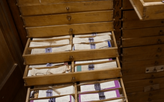 But they might have faded away if not for the work of a scholar who, by collecting the folksongs, helped contribute to the “national awakening” of the Latvian people, helping them to recognize their own unique cultural heritage and identity. His name was Krišjānis Barons, and between 1895 and 1915 he asked singers and informants to write down and send him examples of local folksongs. He received 217,996 examples, which he organized and assembled in a unique cabinet, cataloging the folksongs by the themes and the time of year in which they were performed. The folksongs are written on small hand-written paper slips sized and the cabinet itself has become a cultural symbol.