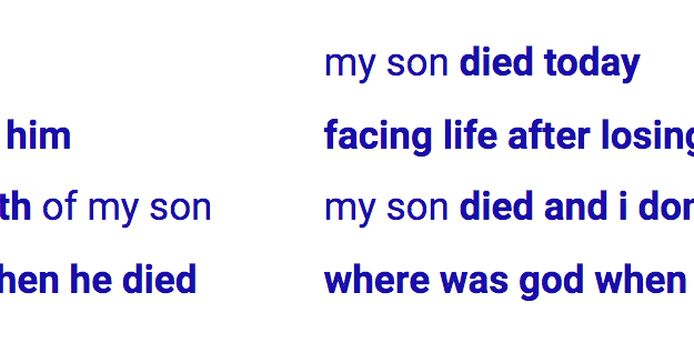 I suddenly realized: I was looking for poetry to comfort me, as words always have. Down at the bottom of the page were a set of words reflecting my lived experience. Look, feel the depths of my grief in a search engine hit list: