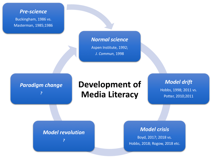 We suggest looking at the development of media literacy education through Kuhn’s model and through several formative debates that have served as a manifestation of the field’s evolution. Our choices are a matter of interpretation, yet we believe that they can offer valuable insights.