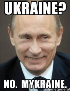 Take, for example, this meme about Putin and Ukraine. Memes require contextual knowledge to be understood. What does it mean, I ask my students: Ukraine? Mykraine? What background knowledge is needed for this meme to make sense? When learning about the Cold War conflict, students understand that although the Soviet Union and the United States never fought one another directly on a battlefield, they took sides through proxies as other countries, including Korea, the Czech Republic, Poland, and other countries struggled with implementing either democracy or communism. Since the end of the Cold War, as Russia lost global influence, many hoped that Russia would gradually turn toward the West and become aligned with European interests. But when three former countries controlled by Russia were invited to join NATO in 1999, Russia grew fearful of Western influence; these fears expanded as the U.S. waged wars in Iraq and Afghanistan. When Vladimir Putin invaded Ukraine, ultimately annexing the Crimean peninsula, this began a “New Cold War” period.